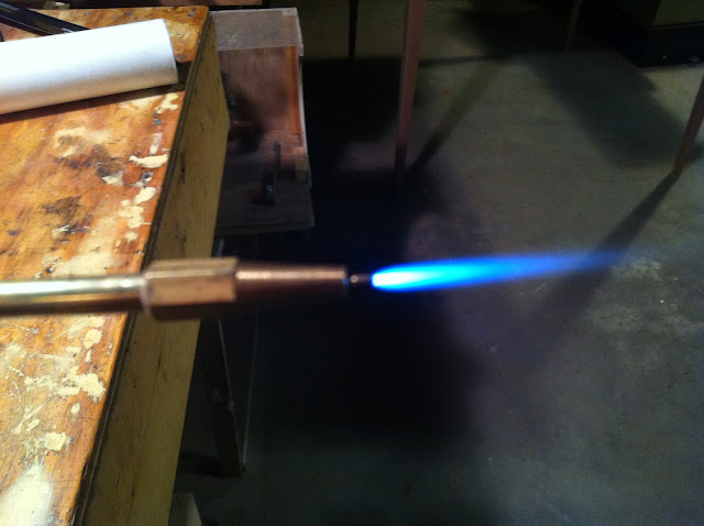A simple fixture to secure a hinge during the solder operation. The tweezers hold the hinge and act as a heat sink preventing the tubes from coming unsoldered. I worked the torch with my right hand while pressing the ends of the hinge pins down on to the mount using two solder picks held with my left hand.